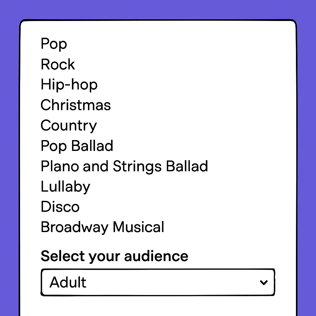 You don't need to sing, play an instrument or even write lyrics. We do it all!